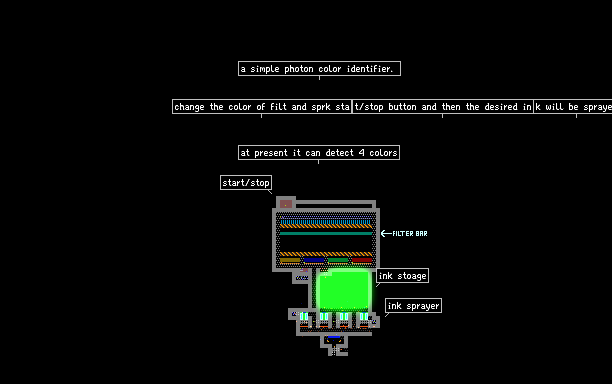 use it to detect the color of phot.to use the steps are- 1) change the filt bar color to the desired color. 2) press the start/stop button(sprk) 3) see what happens. vote if like