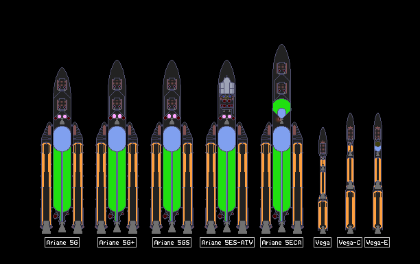 European Space Agency's current heavy launch vehicle, carrying Ariane name while being very different from previous rockets of the family, and light Vega rocket, derived from its solid booster