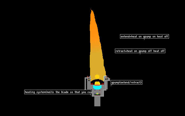 The acronym stands for Extension/retraction by Heat. I finally done it, i've made a hilt that forges its own blade and destroys it when needed