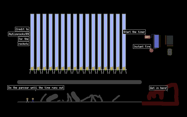 youre goal is to get to the end before the time runs out and the rockets activate. Credit for the rockets for Autismrocks99